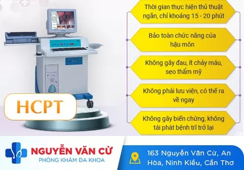 Hiện nay tại Phòng Khám Đa Khoa Nguyễn Văn Cừ đang áp dụng kỹ thuật xâm lấn tối thiểu HCPT – phẫu thuật cắt trĩ không biến chứng – không chảy máu – phạm vi tổn thương nhỏ có thể bù đắp tất cả các mặt hạn của các phương pháp truyền thống – cổ điển xưa cũ, hiệu quả điều trị gần như là tuyệt đối.